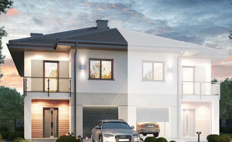 Projekt Willa Olszowa jest projektem domu w zabudowie bliźniaczej z piętrem i z garażem o powierzchni ok. 19 m2, który bez problemu pomieści auto klasy premium. Budynek znajdujący się na działce o powierzchni ok 350 m2. Przewidziany nawet dla 5-osobowej rodziny. W jego skład wchodzi funkcjonalnie zagospodarowany parter z przestronną jadalnią połączoną z salonem i kuchnią. Dodatkowo na parterze znajduje się łazienka. Dzięki równie pomysłowo zaprojektowanemu piętru do dyspozycji mieszkańców, mamy łazienkę oraz dodatkowe 4 przemyślane sypialnie (z czego 3 mają dostęp do balkonów ).